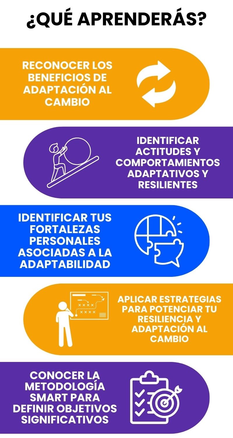 Este curso no solo te equipará con las habilidades y herramientas necesarias para enfrentar los desafíos del cambio, sino que también te empoderará para abrazar el cambio como una oportunidad para crecer y prosperar en todos los aspectos de tu vida. ¡No pierdas esta oportunidad de descubrir tu resiliencia interior y alcanzar tu máximo potencial! ¡Inscríbete aquí para el curso gratuito de Adaptación al Cambio y prepárate para transformar tu vida!